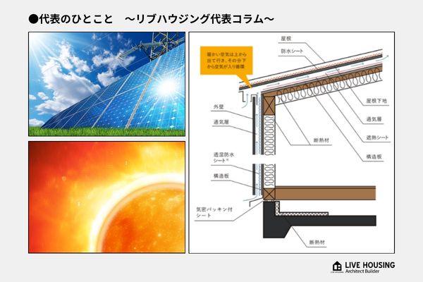 しっかりと、排熱、排湿、排気ができる構造をつくる事が、家の耐久性を維持する上でも欠かせない重要なポイントになります。