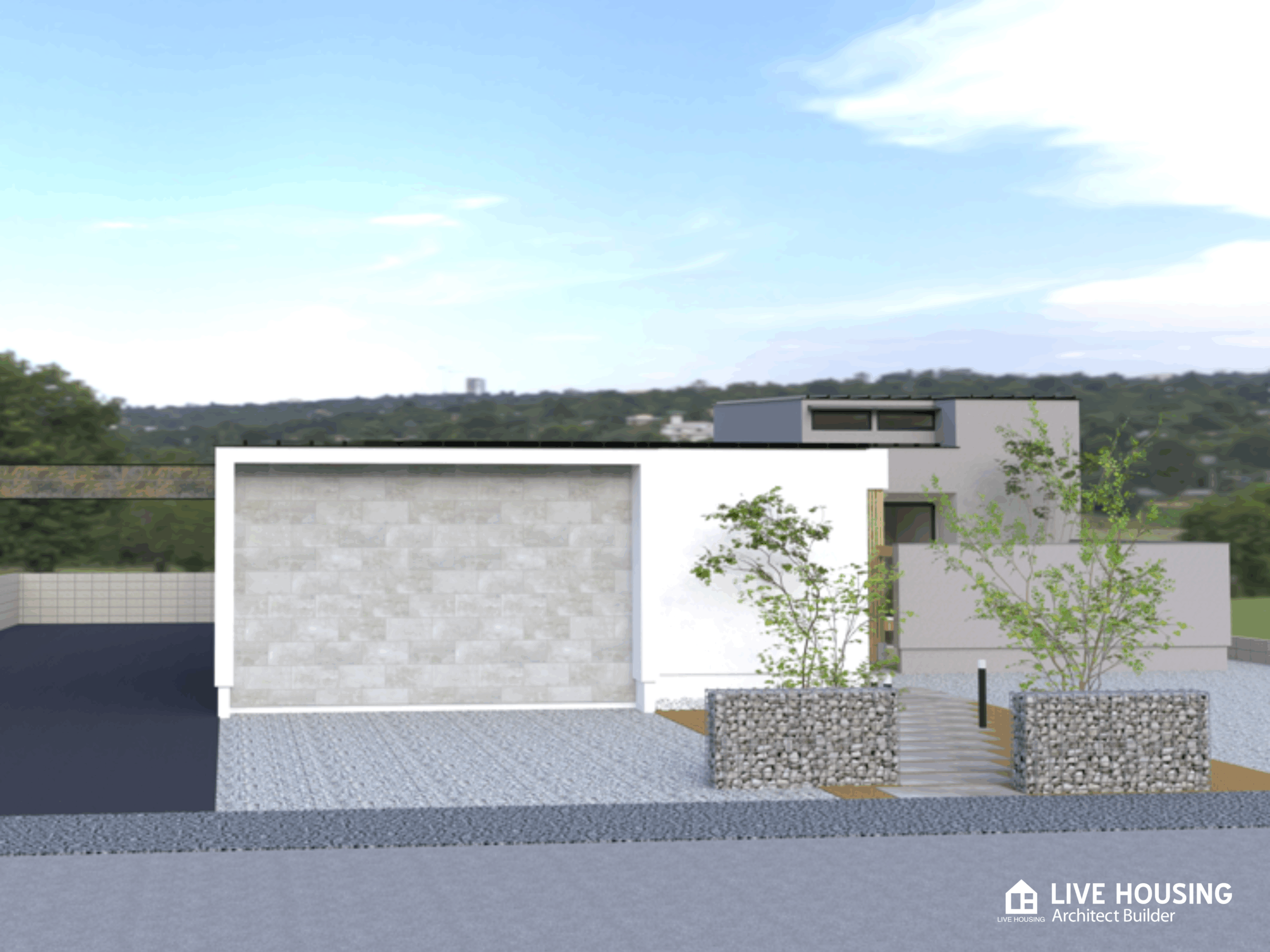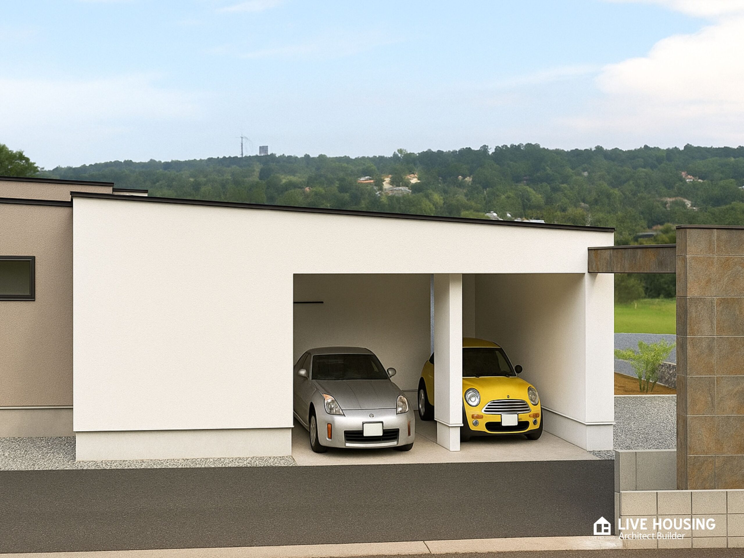 建物と一体化したビルトインガレージは、デザイン性と機能性を兼ね備えた空間。雨の日でも濡れずに玄関へアクセスでき、荷物の積み下ろしもスムーズです。