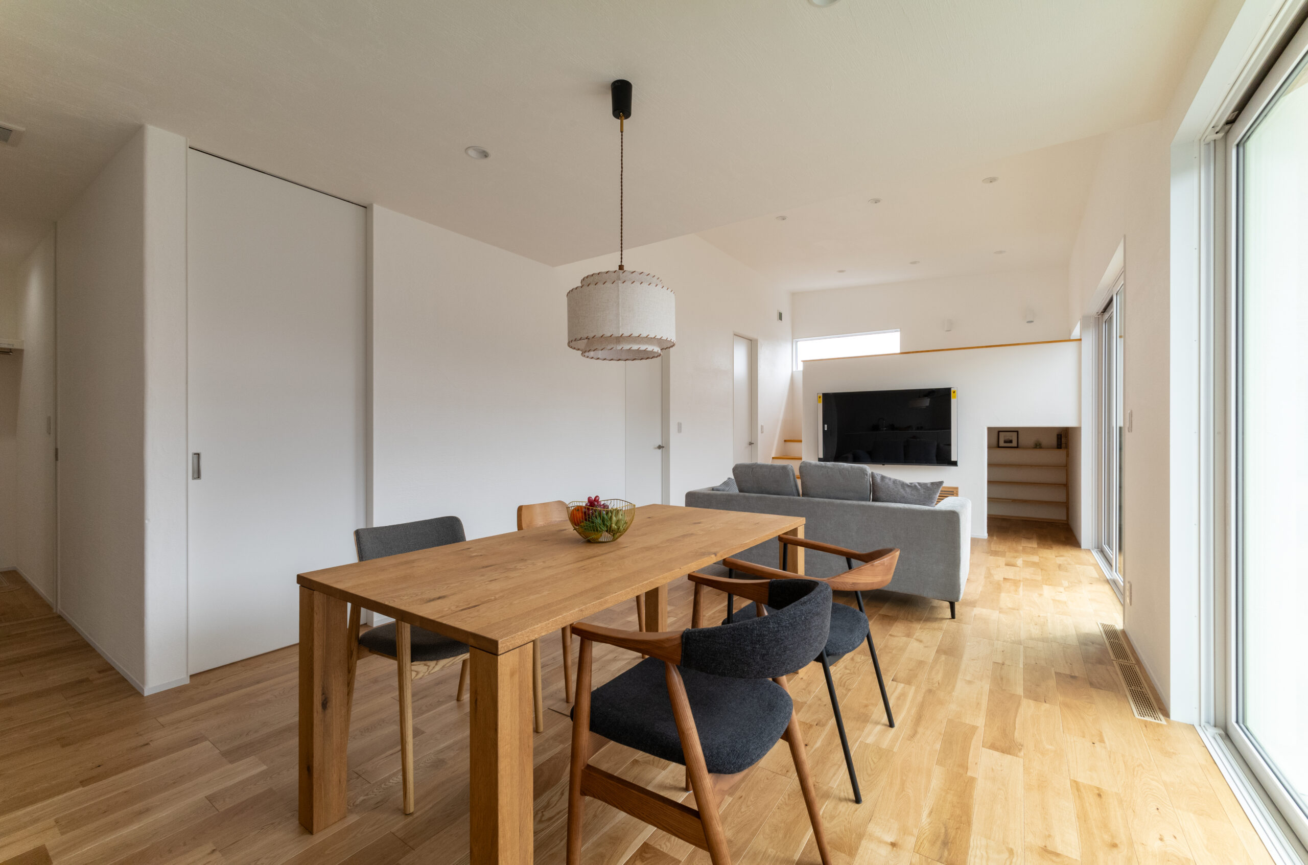 今回の最大のテーマは「できるだけ廊下を少なく、ミニマルに」。思い切って廊下を一つもなくすことで、施工費を抑えながらLDKの居住スペースを最大限に確保しました。