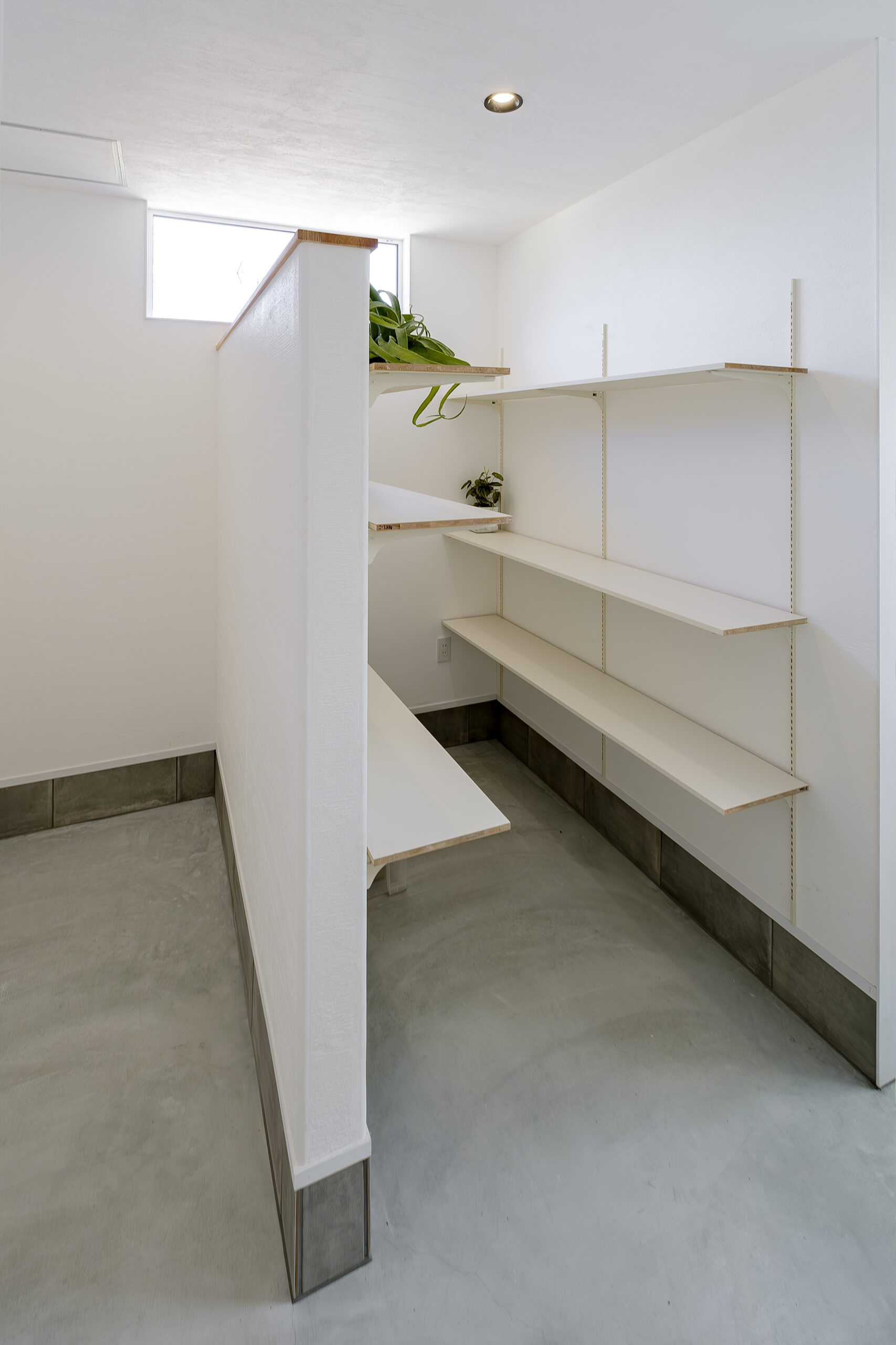 来客用と家族用の動線を美しく分けた、ゆとりある玄関スペース。サーフボードのメンテナンスも気兼ねなく行える広々とした土間には、懸垂バーを備え付けています。日常の利便性を高めるだけでなく、日々の趣味やトレーニングを楽しむための余白を持たせた空間です。